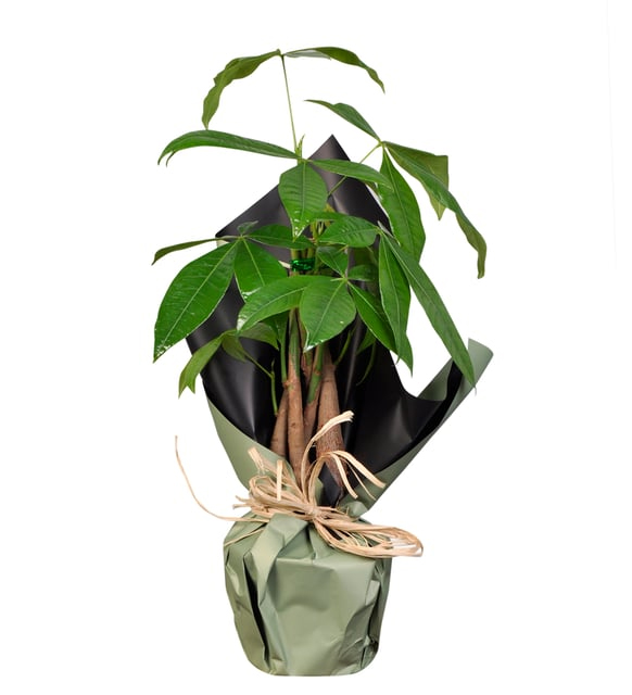 Doğanın dengesini ve yaşam enerjisini tek bir tasarımda buluşturan Pachira, bulunduğu ortama yalnızca yeşil bir dokunuş değil, anlamlı bir his de taşır. Bereketi, şansı ve sürekliliği simgeleyen bu özel bitki; güçlü kökleriyle güven duygusunu, yukarı doğru uzanan formuyla ise büyümeyi ve umut dolu başlangıçları temsil eder. Canlı yeşil yapraklarının ferahlatıcı etkisi, zihni sakinleştirirken yaşam alanlarına doğal bir akış kazandırır. Beyaz polimer saksının sade ve modern duruşu, pachira’nın doğal güzelliğini ön plana çıkarırken; koyu somon tonlarındaki buket kâğıdı tasarıma sıcak, sofistike ve özgün bir karakter katar. Mor kurdele ise bu güçlü ve zarif birlikteliği tamamlayan anlamlı bir detay olarak öne çıkar; derinlik, asalet ve duygusal bir bağ hissi yaratır. Uzun ömürlü yapısı ve etkileyici duruşuyla bu özel pachira aranjmanı, bakıldıkça iyi hissettiren ve bulunduğu ortama pozitif bir enerji yayan zamansız bir tasarıma dönüşür. Siparişiniz sonrasında çıkacak “Not oluşturma” sayfasında birkaç cümlelik not oluşturarak hediyenizi daha anlamlı bir hale getirmeyi unutmayın.