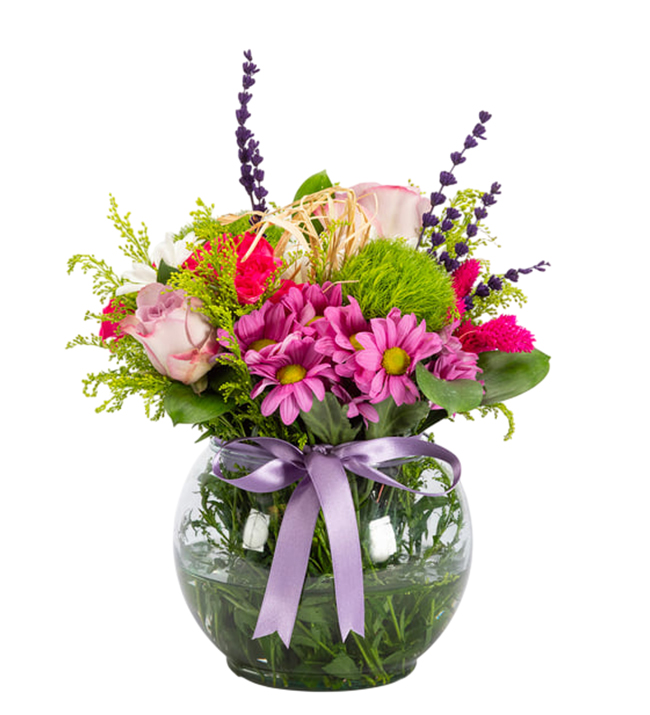 Lila Pembe Güller Ve Papatya